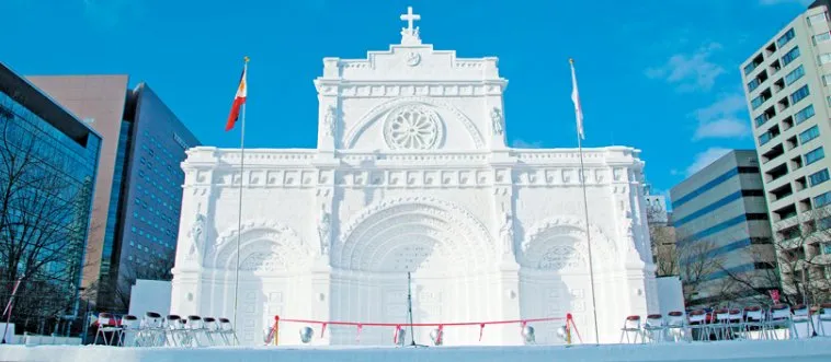Sapporo Snow Festival, showcasing gigantic ice sculptures and winter fun, freezes which Japanese city in excitement?