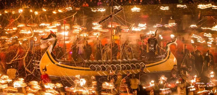 Up Helly Aa, the fiery Viking torch procession and longship burning, ignites which Scottish island group?