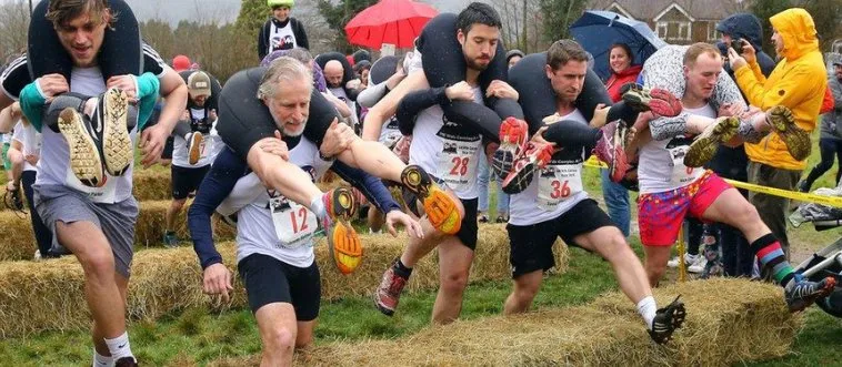 The Wife Carrying World Championships, a hilarious obstacle race with partners on backs, is contested in which Nordic country?