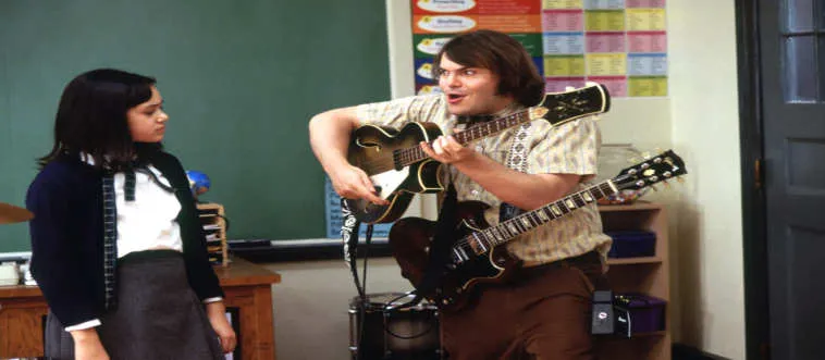 What was the name of the 2003 film where Jack Black pretended to be a substitute teacher and formed a rock band?